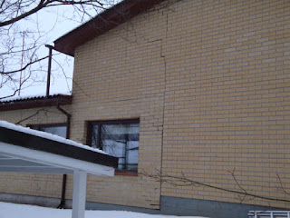 Ostaessamme 2000-luvun taitteessa 70-luvun omakotitalon, oli sen hinnassa huomioitu mm. maan painumisesta johtuvat tiilirungon murtumat. Pahin murtumakohta oli uuden ja vanhan osan liitoksessa, jossa oli tehty sekä suunnittelu-, hyväksymisprosessi- että rakennusvalvontavirheet nipussa mikä tuntuu olevan ”maan tapa” vieläkin. Uusi, paalutettu osa, oli rakennettu osittain vanhan maavaraisen päälle ja varaan. Vanhassa oli jo painumaa kirjattu pariinkin otteeseen tuon ensimmäisen 10-vuoden aikana, mutta silti suunnittelija suunnitteli uuden osan toisen kerroksen tiiliseinineen vanhan rungon varaan. Painumaa syntyi pääasiassa maaperän kosteuden vaihtelujen seurauksena keväin-syksyin n.0,5-1mm/vuosi, koska rakennuspohja oli savea ja kaupungin hulevesiviemäröinti oli salaojien yläpuolella se olisi vaatinut jatkuvaa pumppausta ympäri talon. Lisäksi kaupunki oli hulevesiviemäröinnin tehtyään sallinut oikealla tasolla olleiden avo-ojien täytön umpeen. Tonttien rakennuskannan tiivistyessä myös ojien pinta-ala otettiin käyttöön eli umpeen vaan ilman putkituksia. Painuvaa vanhaa paaluttamatonta osaa talossa on n.250m2.