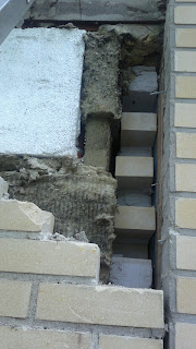 Eristeissäkin ja niiden asennuksessa olisi ollut huomauttamista jo rakentamisvaiheessa. Tuo ”päällekaatuminen” oli jo lähellä, sillä purettaessa selvisi, että osa tiiliseinän tukilangoista oli kiinni vain eristevilloissa toisesta päästään. Villanpalatkin oli tungettu vähän sinne tänne näytteeksi. Kelvottomia olivat siis muuraritkin siinä missä eristäjätkin.